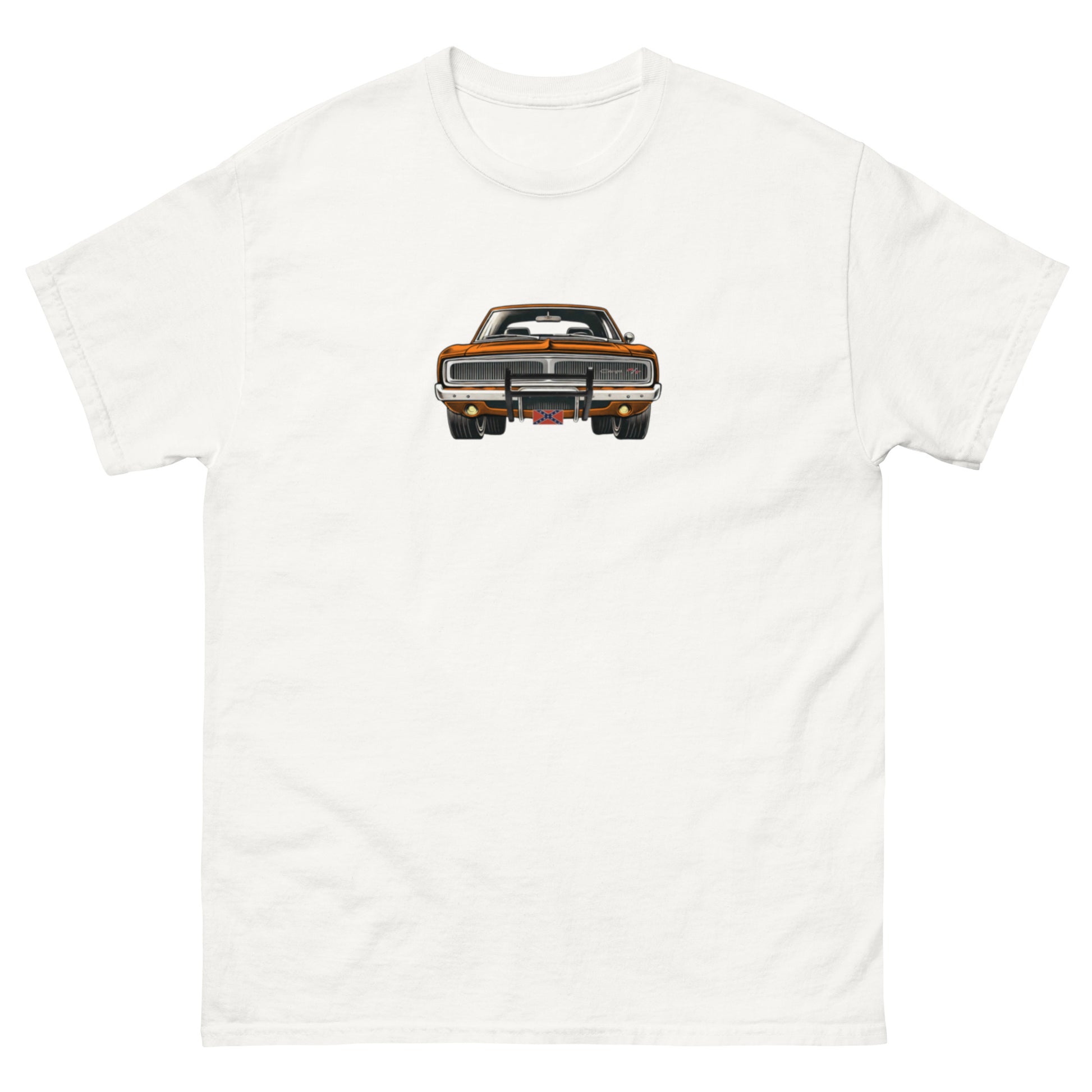 If you like your classic muscle cars orange and inspired by the Dukes of Hazzard then our muscle car inspired t-shirt is for you! Stylish and fun without breaking the bank, this t-shirt is perfect for any car enthusiast. It sits nicely, maintains sharp lines around the edges, and goes perfectly with layered streetwear outfits.